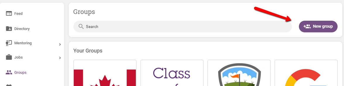 Si teniu permisos d'administrador per crear grups, veureu el botó Grup nou a la pàgina principal de Grups.