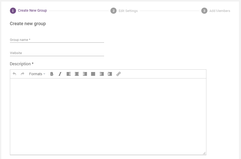 Ompliu el nom, el lloc web (opcional) i la descripció del vostre grup. Aquests detalls seran visibles per a tots els usuaris a la pàgina Sobre el grup.