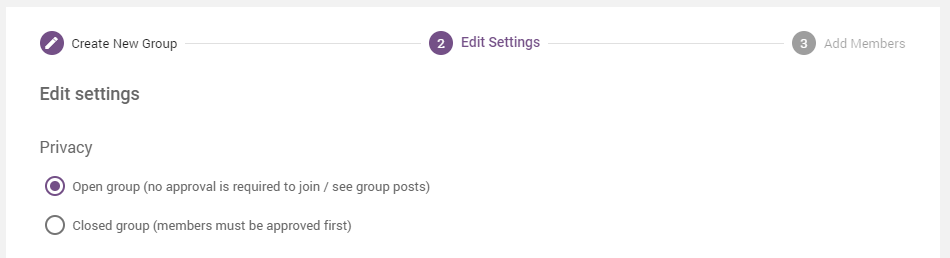 La configuració de l'usuari que coincideixi amb la configuració dels membres del grup (a continuació) s'afegirà automàticament. Altres usuaris només podran veure la pàgina Sobre el grup. Els usuaris poden sol·licitar unir-se al grup, però han de ser aprovats per un administrador del grup .