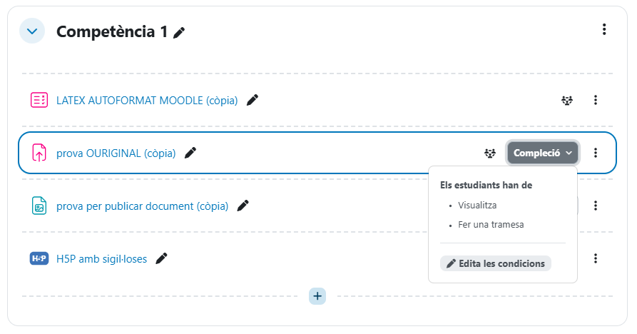 - Soc professor/a, com puc fer que l'estudiant no accedeixi a una activitat mentre no n'hagi fet una altra abans?
