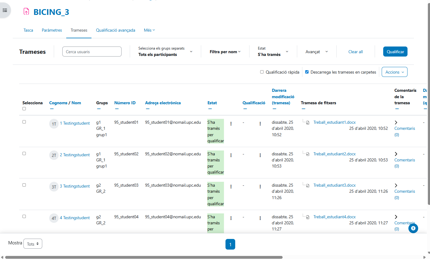- Com puc fer que els estudiants facin trameses de treballs i qualificar-los ?