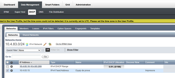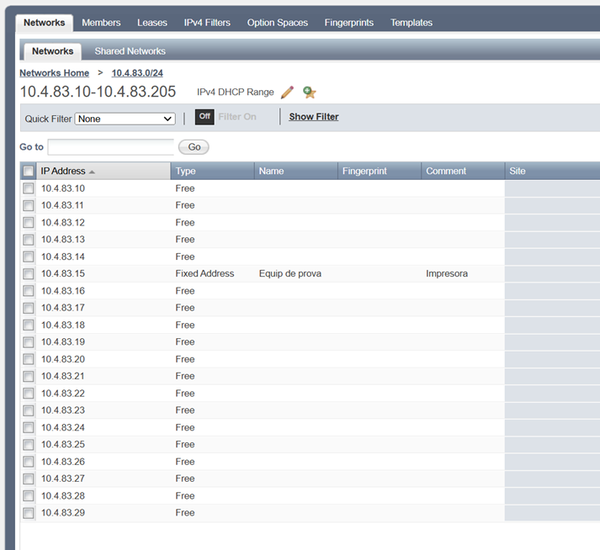 Per tal que l'Infoblox respongui la petició DHCP amb les dades de la xarxa correctament, haureu de configurar les DHCP Options de l'objecte que acabeu de crear. Podeu consultar com fer-ho en el subapartat "DHCP Options" del següent article https://serveistic.upc.edu/ca/dhcp/el-servei/procediments/alta-o-baixa-dun-rang-dips-al-dhcp.