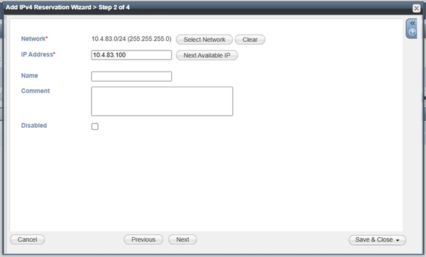 Quan creem una reserva d’IP estarem ignorant aquesta IP de ser assignada pel DHCP. Per crear una reserva d’IP hem de crear un objecte del tipus “Reservation”: