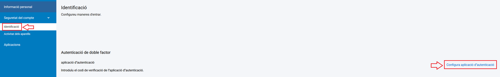 Es molt important configurar el doble factor en un segon dispositiu per garantir l'accés en cas de qualsevol problema amb el dispositiu principal. Per aquest motiu, recomanem configurar-ho també en un segon dispositiu o equip.