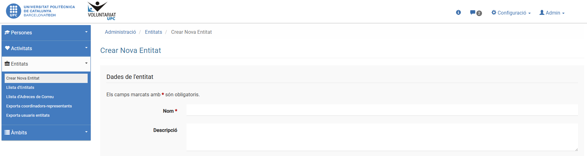 03 ENTITATS - 01 Crear Entitat.png https://serveistic.upc.edu/ca/voluntariat-upc/documentacio/imatges-manuals/04-manual-administrador/03-entitats-01-crear-entitat.png/view https://serveistic.upc.edu/ca/voluntariat-upc/documentacio/imatges-manuals/04-manual-administrador/03-entitats-01-crear-entitat.png/@@download/image/03 ENTITATS - 01 Crear Entitat.png Comparteix: 03 ENTITATS - 01 Crear Entitat.png 03 ENTITATS - 01 Crear Entitat.png image/png Type image/png Dimension Dimension 1889x504 Size File size 65.8 KB Descarrega Feu clic per a visualitzar la imatge a mida completa…