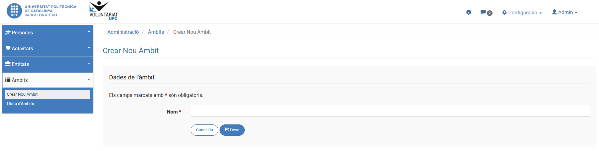 04 AMBITS - 01 Crear Nou Àmbit.png https://serveistic.upc.edu/ca/voluntariat-upc/documentacio/imatges-manuals/04-manual-administrador/04-ambits-01-crear-nou-ambit.png/view https://serveistic.upc.edu/ca/voluntariat-upc/documentacio/imatges-manuals/04-manual-administrador/04-ambits-01-crear-nou-ambit.png/@@download/image/04 AMBITS - 01 Crear Nou Àmbit.png Comparteix: 04 AMBITS - 01 Crear Nou Àmbit.png 04 AMBITS - 01 Crear Nou Àmbit.png image/png Type image/png Dimension Dimension 1907x483 Size File size 59.6 KB Descarrega Feu clic per a visualitzar la imatge a mida completa…